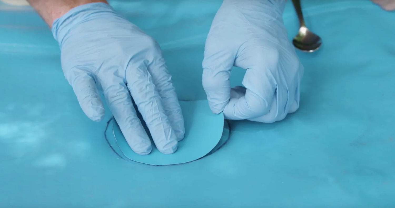4. Ta en PVC-lapp från reparationssatsen som följde med din SUP. Skär den till en rund form som är något större än det område som har ett läckage.